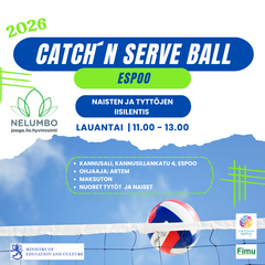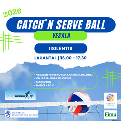 Catch´n Serve Ball -hankkeen kevät 2026 (2.2.2026) Kevään Catch’n Serve -harjoitusvuorot ovat pyörähtäneet käyntiin tammikuussa. Ajantasaiset harjoitusajat, paikat sekä mahdolliset muutokset löytyvät täältä:
