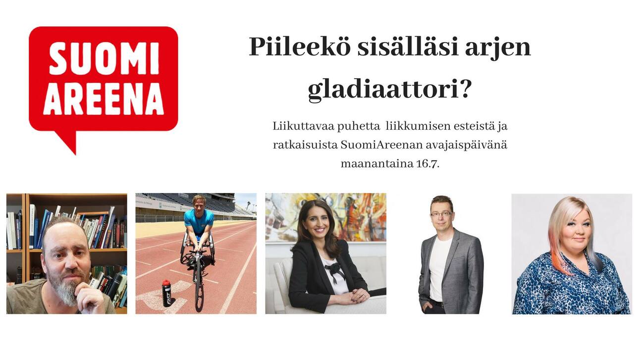 Klo 14.30–15.30 Arjen gladiaattorit – yli liikkumisen esteiden -keskustelutilaisuus Antinlavalla (Antinkatu 5)