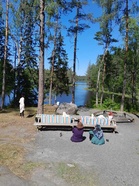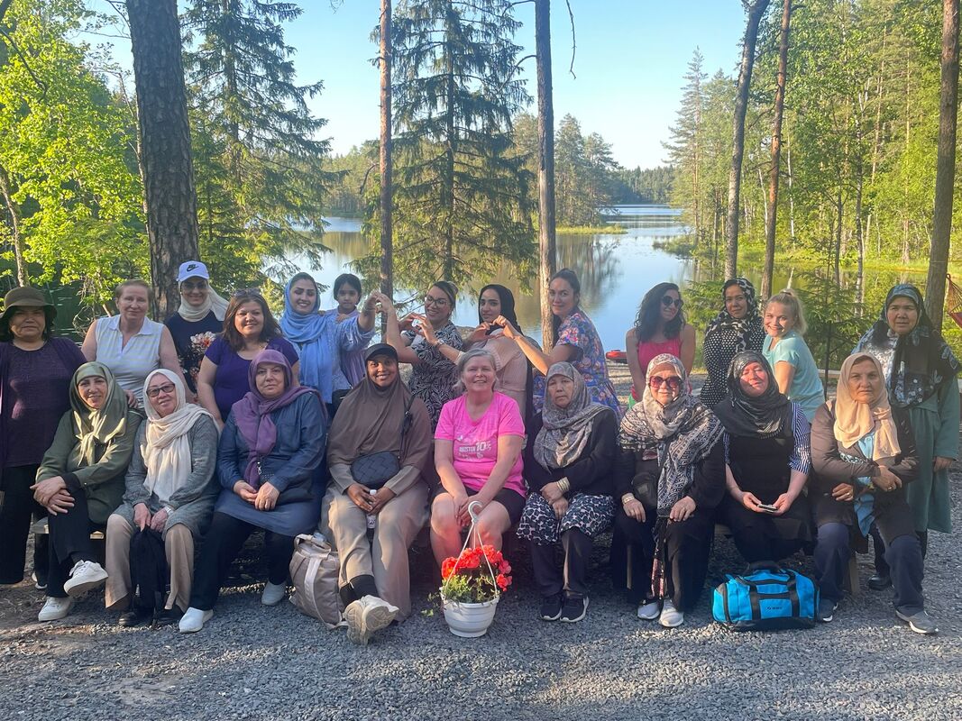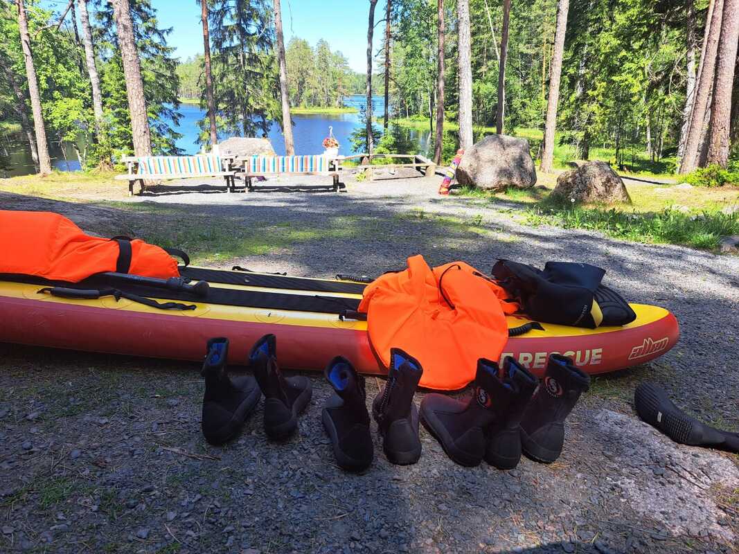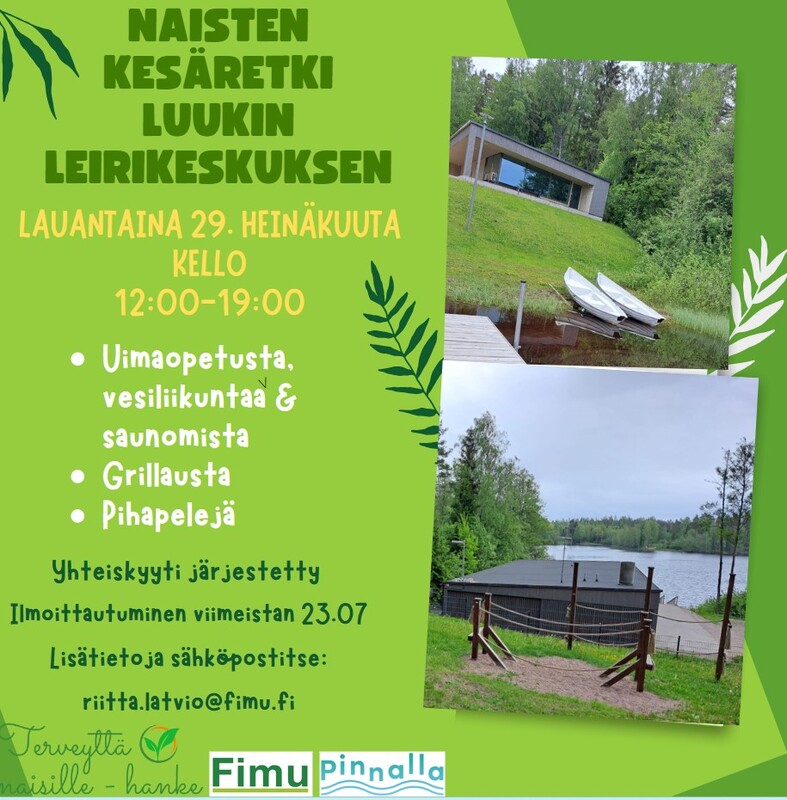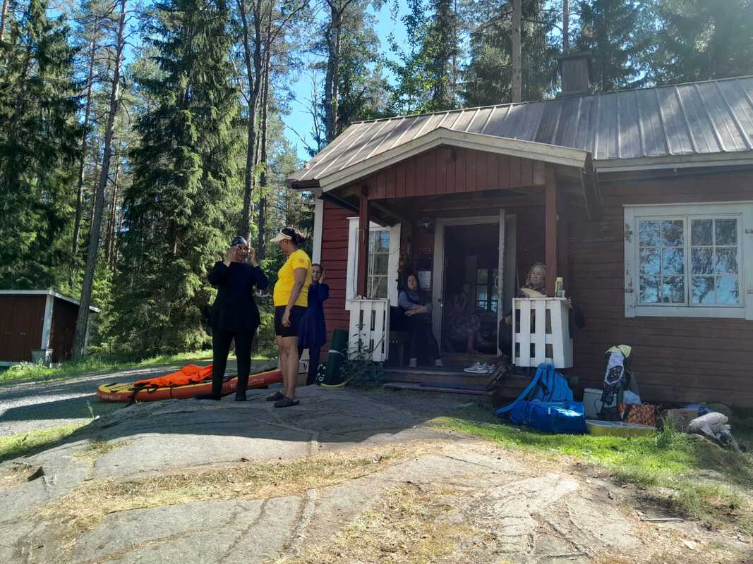 Lisätietoja antaa Pinnalla-hankkeen koordinaattori Riitta Latvio / 050 551 1197, riitta.latvio@fimu.fi. Retket järjestää FIMU ry:n Pinnalla luonnon vesillä -projekti. Retkien järjestämistä tukevat William Thurings Stiftelse, 7nde Mars Fonden, Stiftelsen Emilie och Rudolf Gesellius Fond, Helsingin kaupunki, ja Opetus- ja kulttuuriministeriö. Kesäkuun päiväretket Nuuksioon 19.-21.6. Vieressä tunnelmia ja kuvia Pinnalla luonnon vesillä -päiväretkiltä Nuuksioon ma, ti ja ke 19.-21.6, joille kullekin osallistui n. 15 naista ja tyttöä. Aurinko, vesi, sauna ja luonto helli meitä. Retkillä käytiin läpi asiaa vesiturvallisuudesta: yleisohjeita uimisesta ja liikkumisesta luonnon vesillä, pelastusliivin käyttö, HRAP (= Hälytä, Rauhoita, Apuväline, Pelasta) -sääntö, sekä pelastusharjoituksia ämpärillä, kanisterilla ja pelastusrenkaalla. Asia kiinnosti ja siitä nousi myös keskustelua. Osallistujat saivat uimaopetusta, vesijumppaohjausta ja suppilautailua. Kiitokset ohjaajille, yhteistyökumppani SUH ry:lle materiaaleista ja pelastusvälineiden lainasta sekä Iftin-seura ry:lle ja MLL Uudenmaan piirille. Seuraa Pinnalla-hanketta: