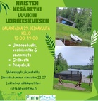 Heinäkuun päiväretket Luukkiin 29.-30.7.2003 Heinäkuun viimeisenä viikonloppuna, 29.-30.7. teemme 2 päiväretkeä Luukin leirikeskukseen, Luukinranta 10, Espoo. Retken ohjelmassa on uintia, vesijumppaa, uimaopetusta, suppailua / soutelua, saunomista, grillaamista ja muuta mukavaa kesätouhua! Lisäksi saamme tietoa turvallisesta liikkumisesta luonnon vesillä ja harjoittelemme sitä käytännössä :) Kaikki retken osallistujat ja työntekijät ovat naispuolisia. Lauantain 29.7. retki on tarkoitettu yli 15-vuotiaille tytöille ja aikuisille naisille. Sunnuntain 30.7. retki on suunnattu ikääntyneille, yli 55-vuotiaille naisille. Päiväretken hinta on 20€. Hiintaan sisältyy 2 lämmintä ruokaa, ohjattua vesiliikuntaa ja yhteiskuljetus. Bussin reitti (Lehtimäen liikenteen tilausajo): Helsinki, Itäkeskus, metroasema klo 10.45; Vantaa, Myyrmäki, juna-aseman aukio klo 11.15 - Espoo Leppävaara, GLO-hotellin edusta klo 11.45. Perillä Luukissa ollaan klo 12-19. Illalla bussi lähtee Luukista klo 19 ja ajaa samaa reittiä takaisin Itäkeskukseen, johon saavutaan n. klo 20.15. Ilmoittautuminen Luukin retkiin 24.7. mennessä, tästä ilmoittautumislomakkeeseen.